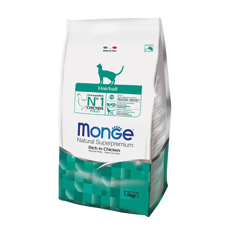 Monge Natural Superpremium Hairball Dry Cat Food - Chicken 1.5Kg