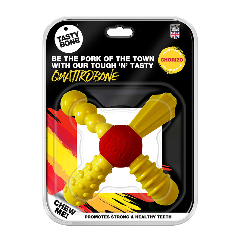 Tasty Bone Quattro Bone Dog Chew Toy - Chorizo